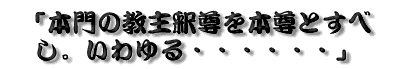 両論の根拠となる大聖人の御遺文を引用することは、ここでは長くなりますので省きますが、一つだけ挙げたのがこのペ−ジの上の大曼荼羅の下に示した『報恩抄』の一節です。「本門の教主釈尊を本尊とすべし。」とありますので、これはもう一尊四士です。上行等の四菩薩を脇士とするのです。しかし、そのあとすぐ「いわゆる・・・」と続き、すぐに「宝塔の内の釈迦多宝・外の諸仏、並に上行等の四菩薩脇士となるべし。」と述べられていますので、これは大曼荼羅に他なりません。また大聖人の最も大事な書の『観心本尊抄』でも、本尊段では大曼荼羅、流通段では一尊四士となります。日蓮宗から発行されている勧学院監修の『宗義大綱読本』では、「一尊四士と大曼荼羅とは大聖人の内意においては同一御本尊の異表現に外ならない」とし、「どちらの表現を本尊として安置するかは行者の環境によるところであって、何れが正、何れが副でもない」とされています。また立正大学の庵谷行亨先生は、法華経の教相門に立脚すれば一尊四士本尊、観心門に立脚すれば大曼荼羅本尊になるとされ、その場合教観不二とされています。しかしはたしてそうなのか?大曼荼羅と一尊四士は=(イコール)で結ばれるのか?そうです。ここに問題点がありかつ重要な点といえるのです。