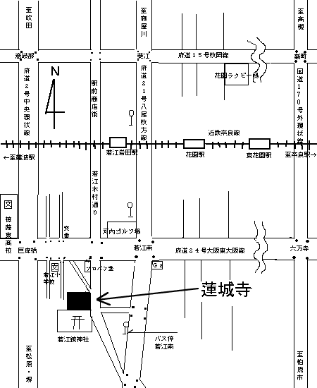 交通手段 電車:近鉄奈良線若江岩田駅→南へ徒歩15分。